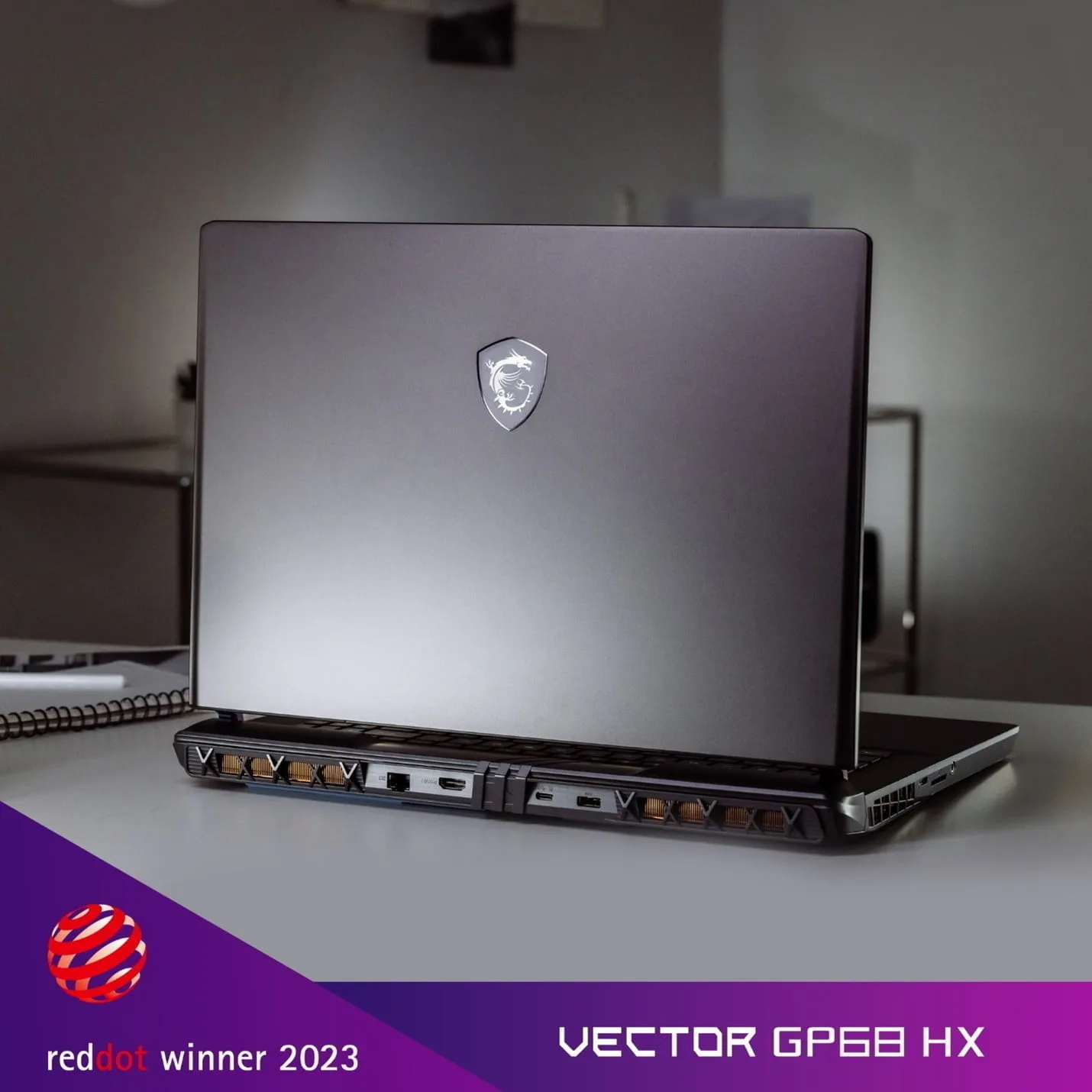 Thiết kế của dòng Vector GP có các chi tiết rất ấn tượng, như sự tích hợp tinh tế logo MSI vào phần ngoại thất, chẳng hạn như hốc thoát gió phía sau hay phần chân đế cao su.