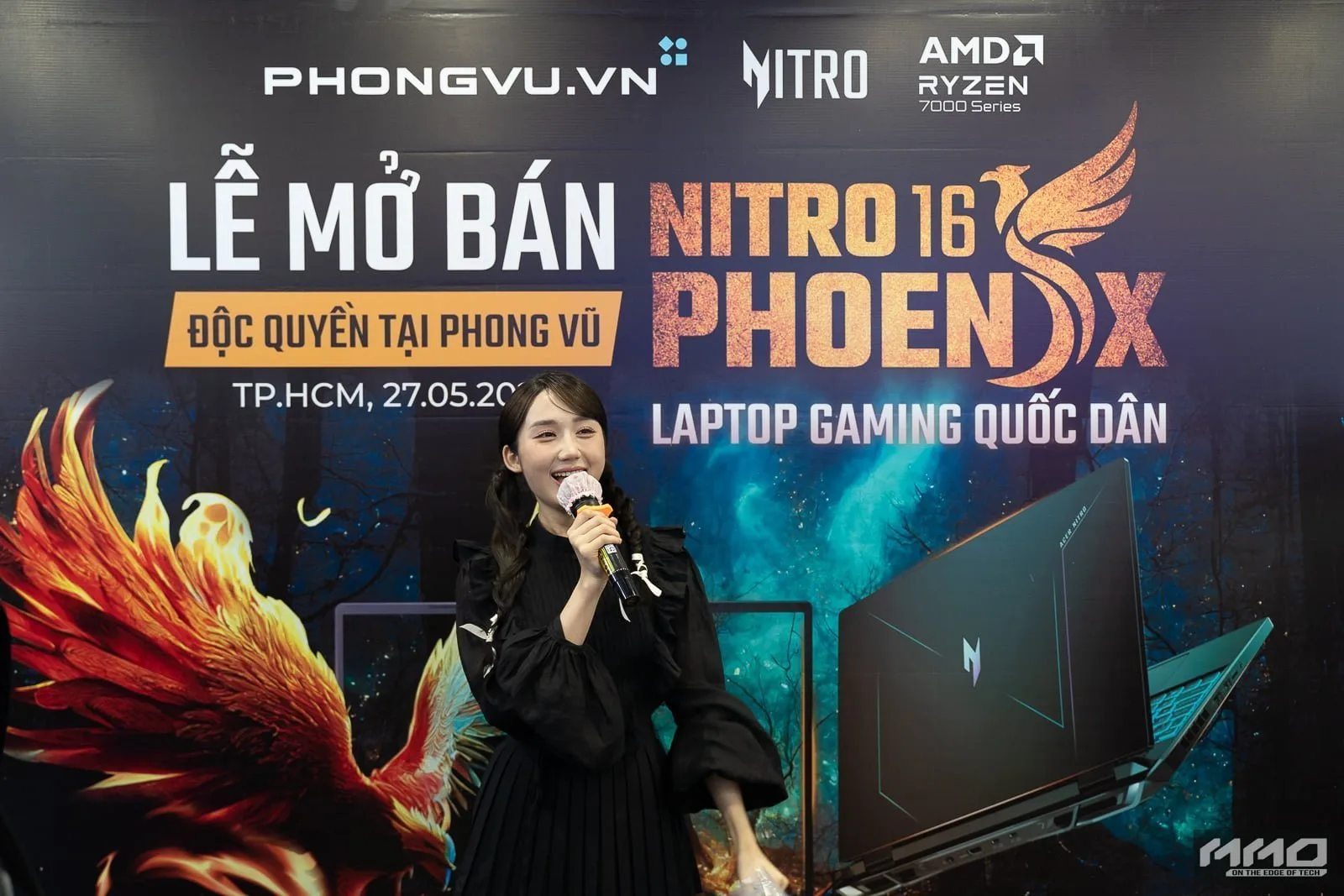 Laptop gaming Quốc dân 2023 Acer Nitro 16 Phoenix AN16-41-R5M4 – Card đồ họa GeForce RTX 4050 và bộ vi xử lý AMD Ryzen 5 7535HS và sẽ được bán độc quyền tại hệ thống cửa hàng Phong Vũ trên toàn quốc với giá bán lẻ 29,990,000 VNĐ, kèm bộ quà tặng Nitro Gears trị giá 7 triệu đồng bao gồm bàn phím cơ gaming Predator, chuột gaming Logitech và balo Predator SUV.