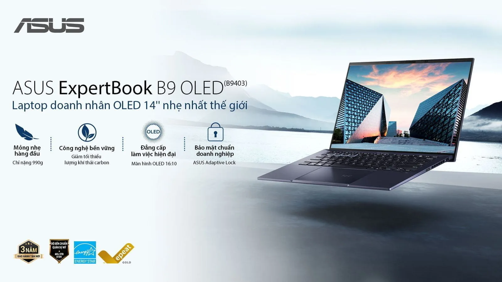 ASUS Việt Nam ra mắt dải sản phẩm chuyên biệt và toàn diện cho doanh nghiệp – ASUS Expert Series thế hệ mới gắn liền các hoạt động phát triển bền vững với điểm nhấn ExpertBook B9 OLED – laptop doanh nhân 14″ OLED nhẹ nhất thế giới.
