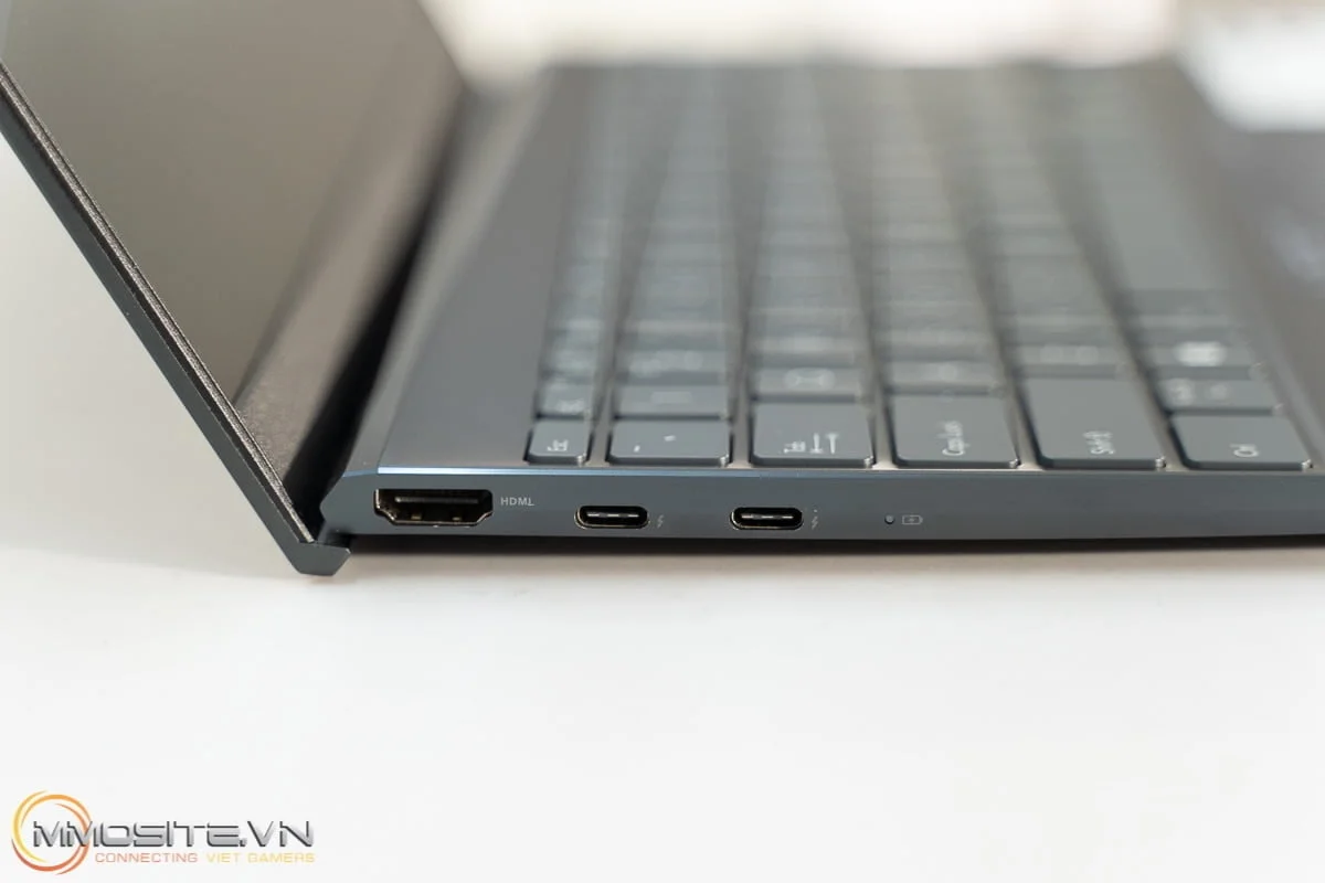 Dù sở hữu độ mỏng hàng đầu chỉ 13.9mm, ZenBook 14 vẫn đảm bảo được hiệu năng của một chiếc laptop văn phòng hiện đại, cũng như gây bất ngờ khi mọi cổng kết nối đều xuất hiện đầy đủ trên chiếc máy này. Chúng ta sẽ có cổng HDMI kích thước đầy đủ hỗ trợ cho việc xuất hình hoặc trình chiếu, cổng USB Type A và 2 cổng Thunderbolt 3 tốc độ 40Gbps cực cao, giúp xuất ra màn hình độ phhân giải cao UHD hoặc những thiết bị lưu trữ bên ngoài. Không một chiếc laptop màn hình 14 inches nào ở thời điểm hiện tại lại có thể mỏng như ZenBook 14 mà vẫn có đầy đủ cổng kết nối cho người sử dụng.