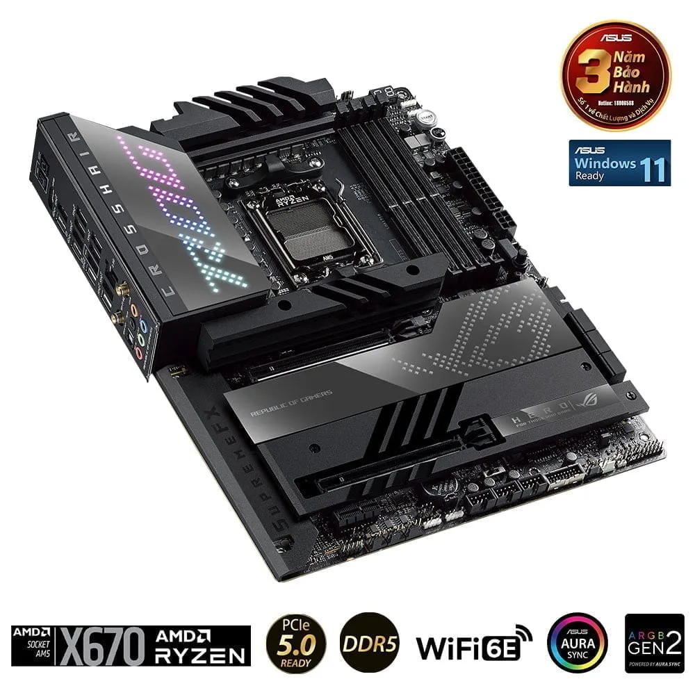 ROG Crosshair X670E Hero cho phép người dùng tự xây dựng một dàn máy chơi game hoàn chỉnh cực mạnh thế hệ tiếp theo. Cặp khe cắm PCIe 5.0 x16 của nó sẵn sàng cho các cạc đồ họa thế hệ tiếp theo, đồng thời cung cấp ba khe cắm PCIe 5.0 và hai khe cắm PCIe 4.0. Hệ thông âm thanh có mức độ chân thực cao để chơi game, giải trí được cung cấp với bộ DAC Quad ESS ES9218 cấp audiophile giúp mang tới những âm thanh tuyệt đỉnh. Với tỷ lệ tín hiệu trên nhiễu vượt trội, giải pháp âm thanh này hoàn hảo để cắm tai nghe chất cao cấp.