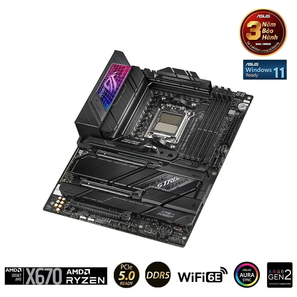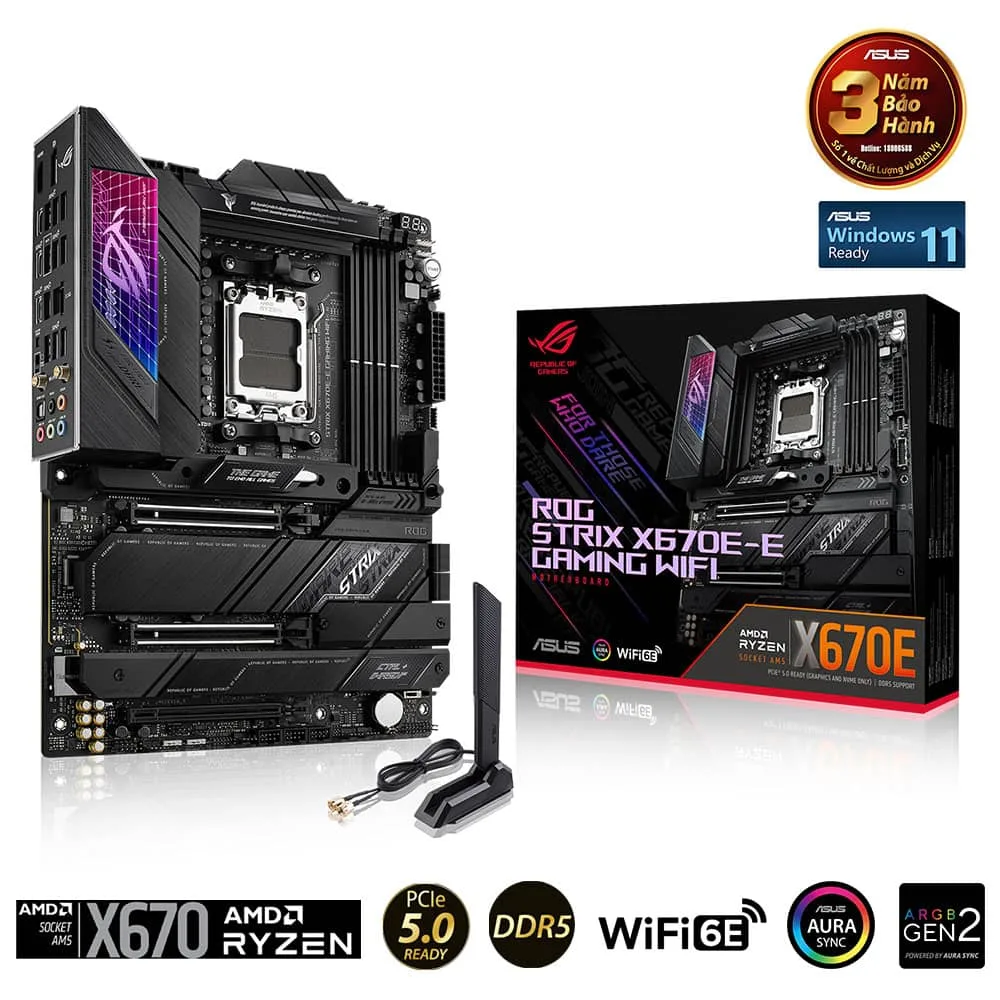 Là bo mạch hiệu suất cao nhất trong gia đình Strix, ROG Strix X670E-E Gaming WiFi kết hợp những gì tốt nhất cả về hình thức và lẫn tính năng. Với thiết kế góc cạnh ở các tấm tản nhiệt của bo mạch cùng với hình tượng ROG đặc biệt, và màn hình acrylic được chiếu sáng trên nắp I/O tích hợp tạo nên một kiểu dáng đặc biệt thu hút ánh nhìn.