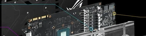 Điều kiện để mang lại hiệu năng cao, ở mức xung cao của một chiếc card đồ họa chính là hệ thống cấp điện. Và ROG STRIX GTX 1080 được trang bị tới 10 pha điện (8+2 pha) cung cấp nguồn năng lượng đồi dào và “sạch” nhất để đẩy hiệu năng lên cao. Bên cạnh đó còn có hệ thổng tụ điện SAP II tiên tiến, cuộn cảm và DrMOS POSCAPs chất lượng cao tăng thêm phần ổn định khi card tải nặng hoặc ép xung.
