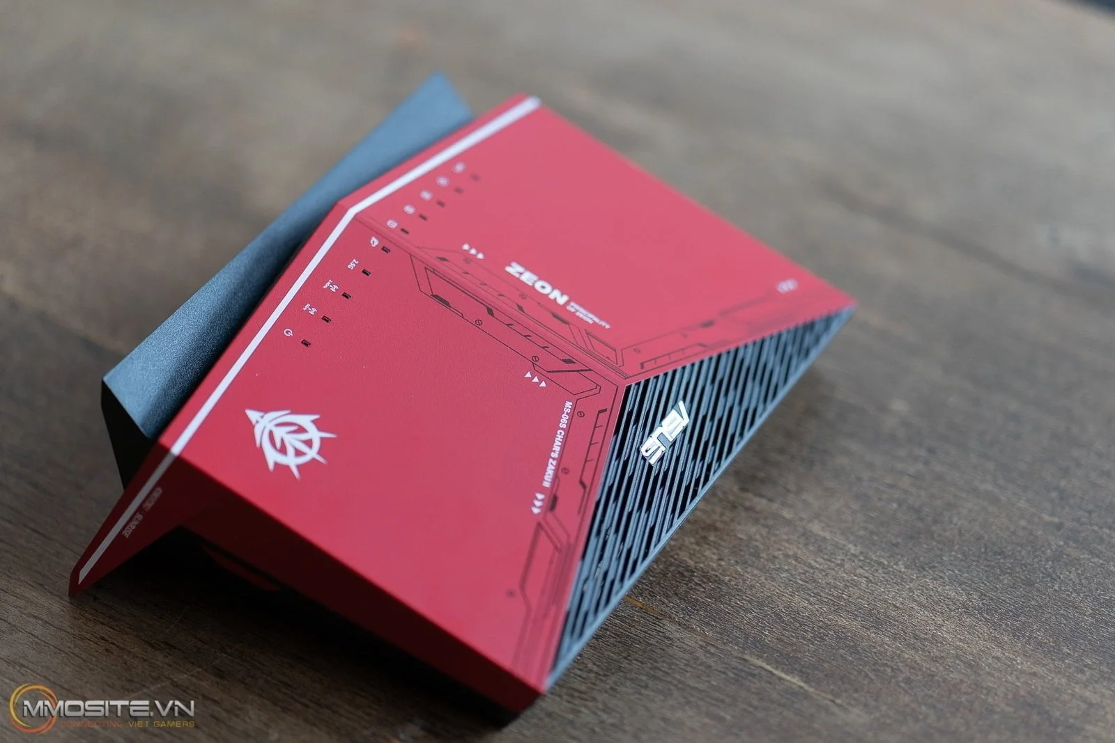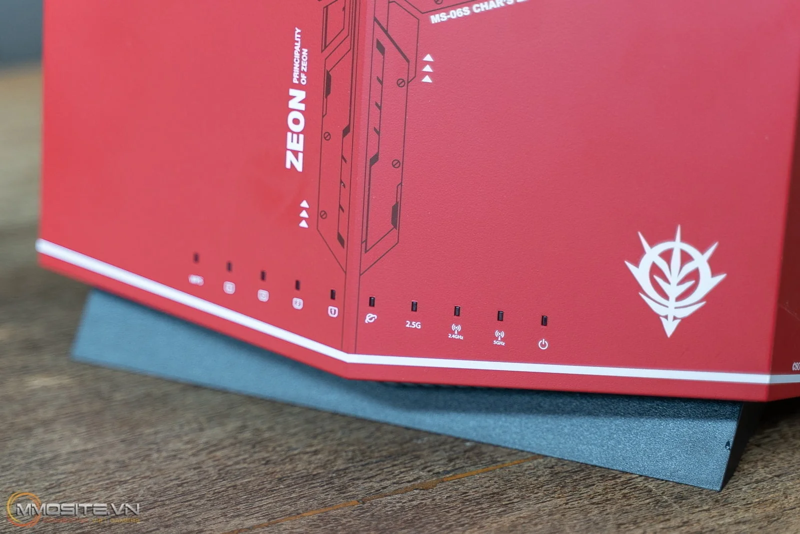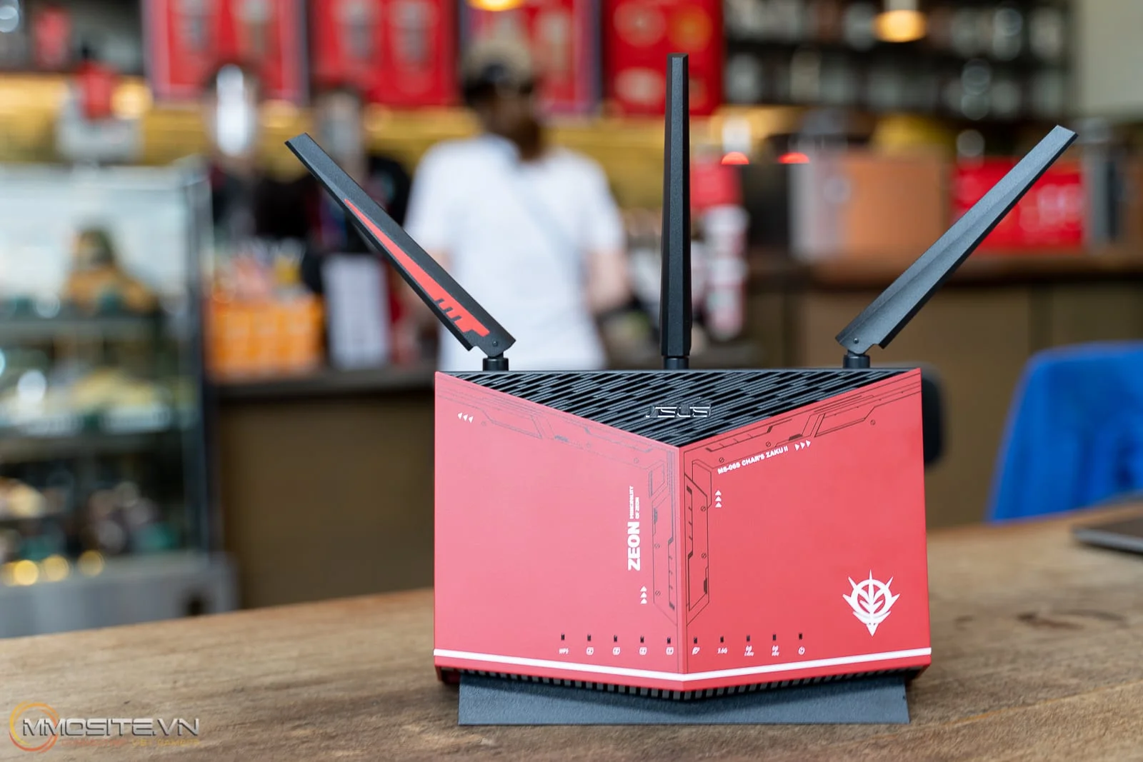 Về cơ bản, đây là router RX-AX86U chuẩn Wi-Fi 6 chuyên game của ASUS, nhưng thay vì được sơn màu đen như nguyên bản thì nó đã được hoàn thiện với phong cách của mobile suit MS-06 Zaku II