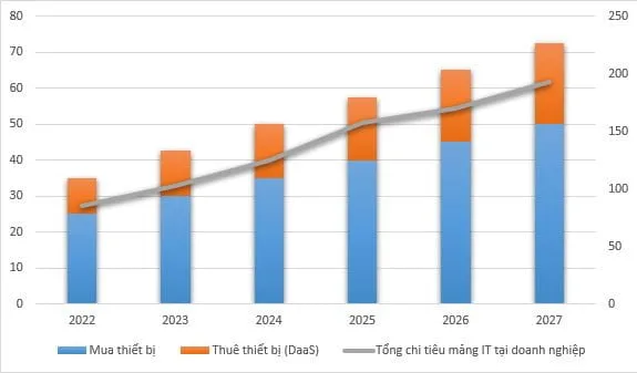 Biểu đồ dự đoán phát triển dịch vụ thuê thiết bị (DaaS) tại Việt Nam. Nguồn: IDC
