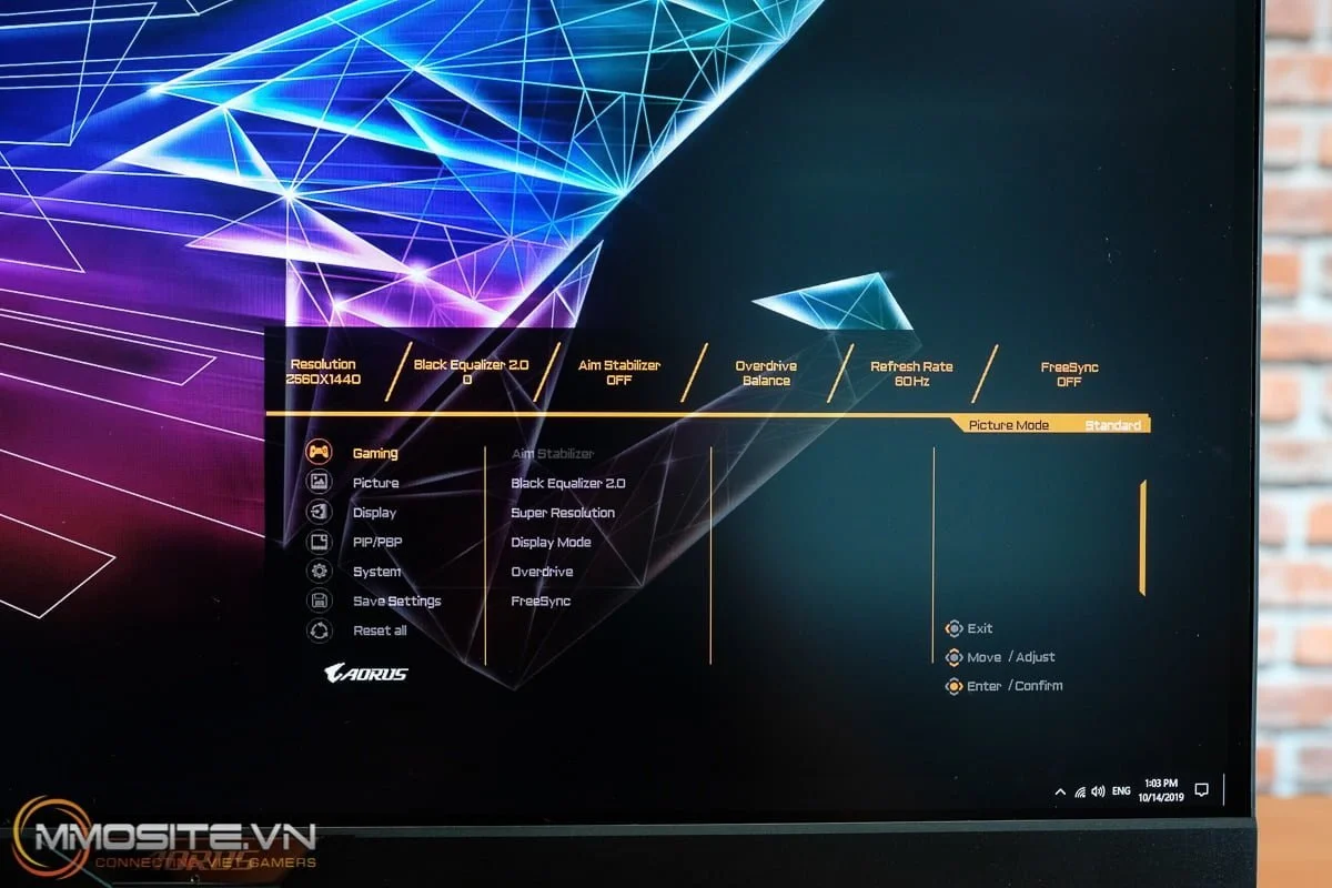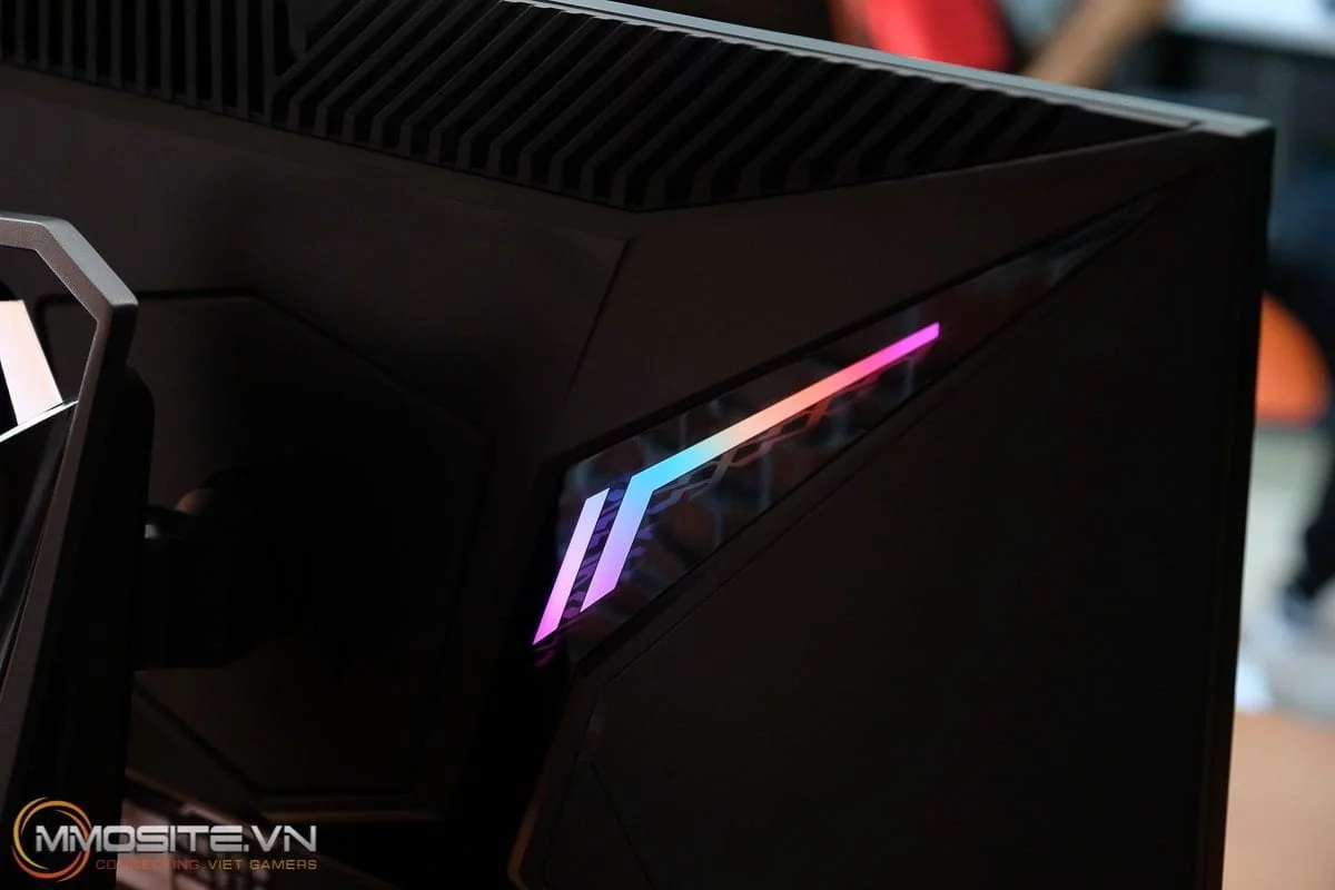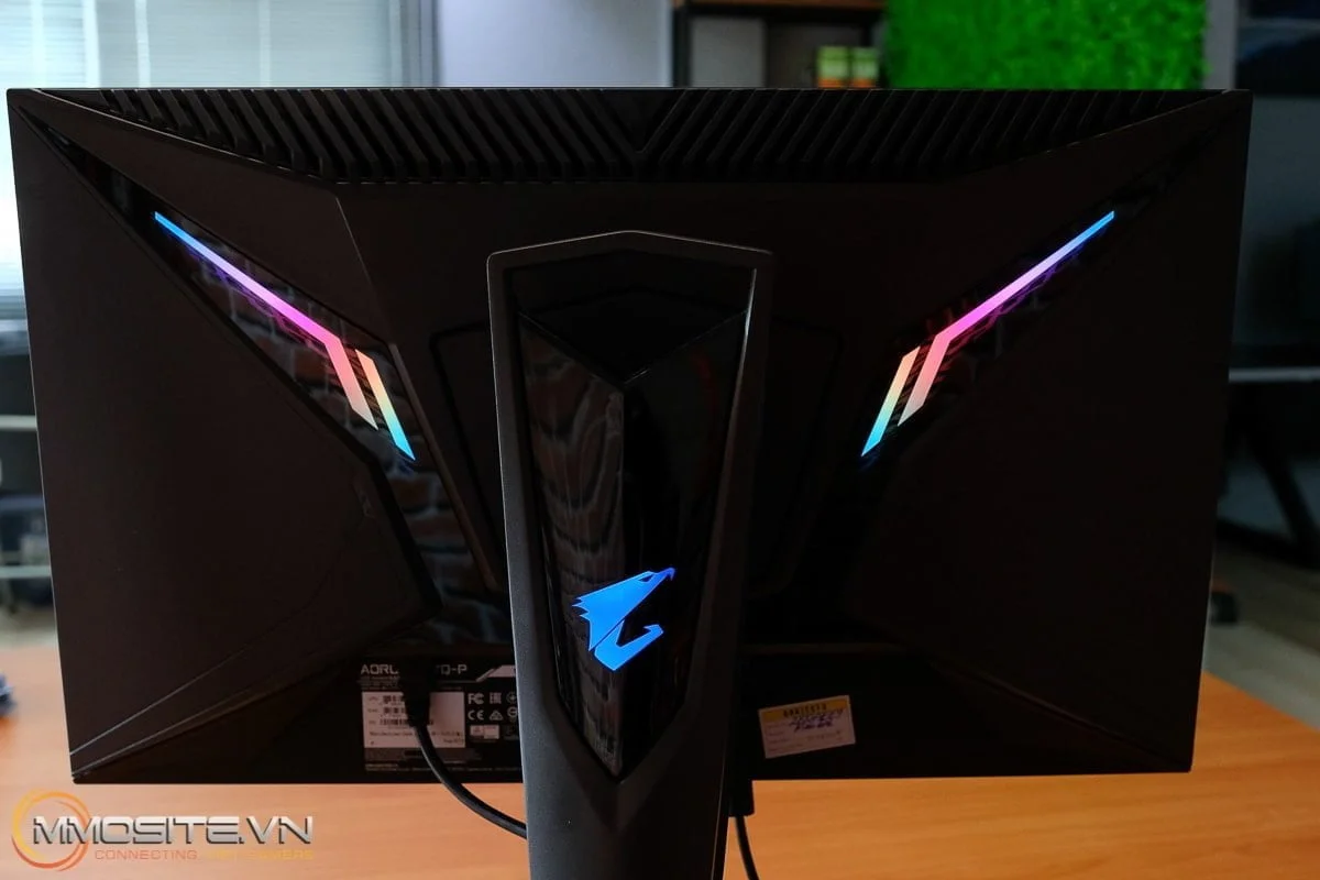 Ngay từ cái nhìn đầu tiên, AORUS FI27Q-P mang dáng vẻ quen thuộc nhưng vẫn có một nét hầm hố riêng. Khung viền màn hình được làm khá mỏng nên nếu bạn để background màu đen sẽ tạo cảm giác “tràn viền”
