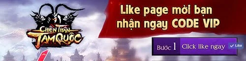 Bên cạnh đó người chơi có thể nhận được code VIP thông qua sự kiện “Like page mời bạn – Nhận ngay code VIP” từ fanpage Chiến Thần Tam Quốc, bộ code bao gồm các vật phẩm hữu ích hỗ trợ cho người chơi trong giai đoạn đầu gia nhập game. Nhận code ngay tại https://www.facebook.com/cttq.360game.vn/