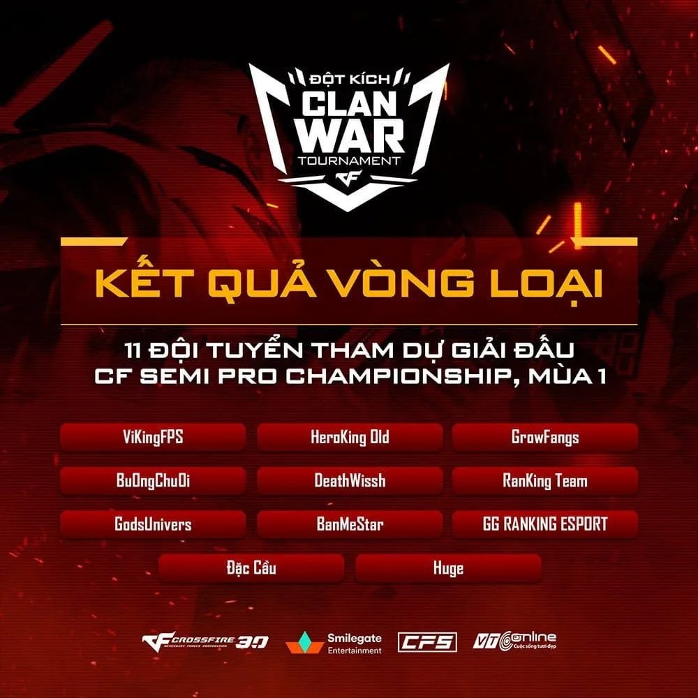 11 đội tuyển vượt qua được giải đấu Clan War 2023 mùa 1 sẽ tiếp bước lên cấp bán chuyên mang theo một điều bất ngờ đầy hấp dẫn.