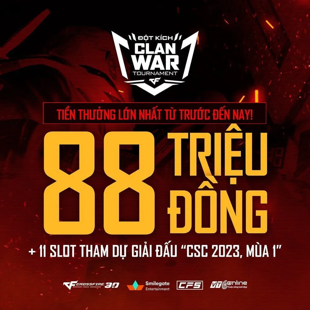 Như vậy là Clan War 2023 mùa 1 đã hoàn thành rất tốt nhiệm vụ của mình khi giới thiệu những gương mặt mới từ hệ thống phong trào cho làng eSports Đột Kích. Đóng vai trò là cửa vào đầu tiên, giải đấu Clan War là nơi tuyển chọn nhân tài eSports Đột Kích trực tiếp từ cộng đồng qua hình thức đăng ký thi đấu tự do. Bất kỳ game thủ nào đủ điều kiện cũng có thể tham gia thi đấu dưới hình thức tự thành lập đội hoặc đăng ký cá nhân để được BTC ghép team.