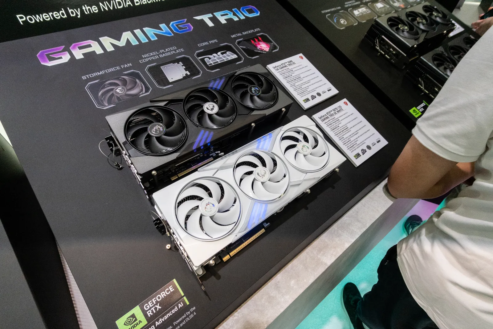 Song song với màn hình, MSI trình làng các mẫu card đồ họa dựa trên kiến trúc NVIDIA Blackwell mới nhất – thuộc dòng GeForce RTX 50 Series. Đáng chú ý là các thiết kế concept mang tính thử nghiệm cao nhưng hoàn toàn có cơ sở để thương mại hoá trong tương lai gần.