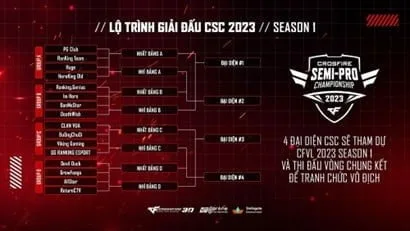 Cuối tháng 3 vừa qua, giải đấu bán chuyên CSC 2023 mùa 1 đã bắt đầu bốc thăm sau khi xác định đủ các đội tham dự bao gồm 11 đội từ Clan War, một đội all star từ Best of Ranking và 4 đội xuống hạng từ giải chuyên nghiệp mùa trước. Các đội này đã được bốc thăm vào ngày 30/3 chia thành 4 bảng đấu chuẩn bị khởi tranh.