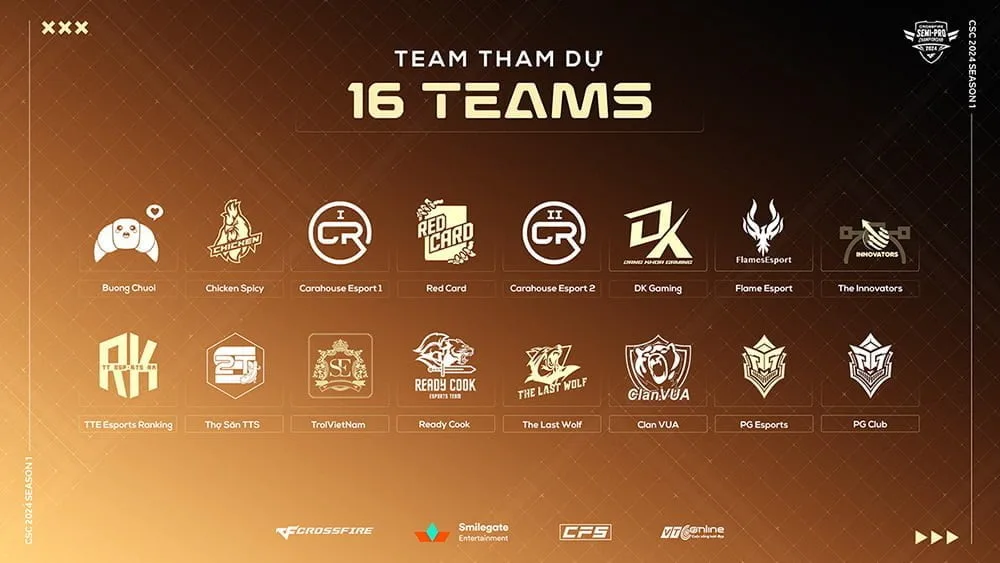 Giải đấu bán chuyên CSC 2024 mùa 1 đã chính thức khởi tranh từ ngày 4/3 vừa qua với tổng giải thưởng được nâng lên đến 100.000.000đ. Có 16 đội tuyển đã tham gia tranh tài bao gồm 12 đội được thăng hạng từ giải phong trào Clan War 2024 mùa 1 và 4 đội xuống hạng từ CFVL mùa trước.