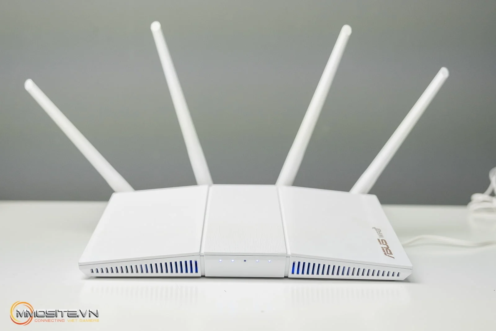 Khi đặt kế RT-AX56U thì AX55 sẽ mỏng hơn một chút nhưng lại nhìn khá hoành tráng khi có đến 4 anten. Trọng lượng cũng nhẹ hơn để bạn có thể treo tường nữa. Để đánh giá về trải nghiệm, chúng tôi sẽ thiết lập hệ thống mạng sẵn có thành WiFi Mesh để tận dụng tính năng AiMesh vốn có của ASUS. RT-AX55 sẽ trở thành một node mạng thứ hai và giao tiếp không dây với AX56U (vai trò node mạng chính).
