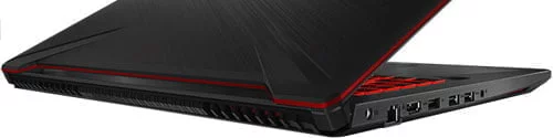 Một điều khá mới lạ trong thiết kế lần này của TUF Gaming FX505 chính là việc nhà sản xuất mang tất cả cổng kết nối qua cạnh phía tay trái thay vì chia đều ra 2 bên như các sản phẩm khác trên thị trường. Việc này thực chất sẽ mang đến sự thoải mái và gọn gàng hơn khi sử dụng và chúng tôi rất thích thiết kế này của TUF FX 505. Người dùng sẽ có 3 cổng USB, 1 cổng HDMI, 1 cổng âm thanh 3,5”, 1 cổng mạng LAN và đầu cắm nguồn
