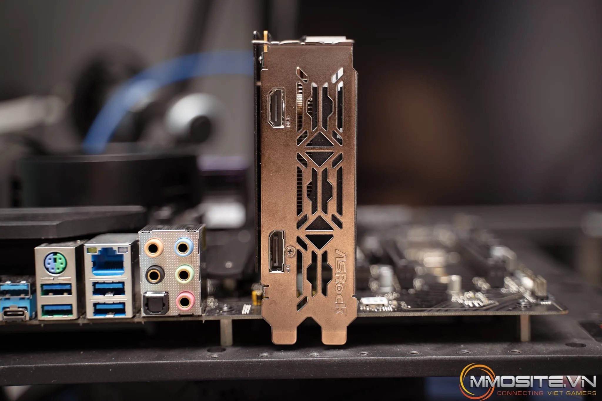 Cuối cùng trong phần đánh giá thiết kế bên ngoài là vị trí các cổng xuất tín hiệu. Như đã noi từ đầu, ASRock RX 6500 XT hướng đến đối tượng chơi game ở độ phân giải 1080p là chính nên việc không có quá nhiều đầu ra tín hiệu cũng phần nào làm cho hiệu năng sử dụng ổn định hơn. Người dùng sẽ có một đầu HDMI và 1 đầu Display Port tại đây.
