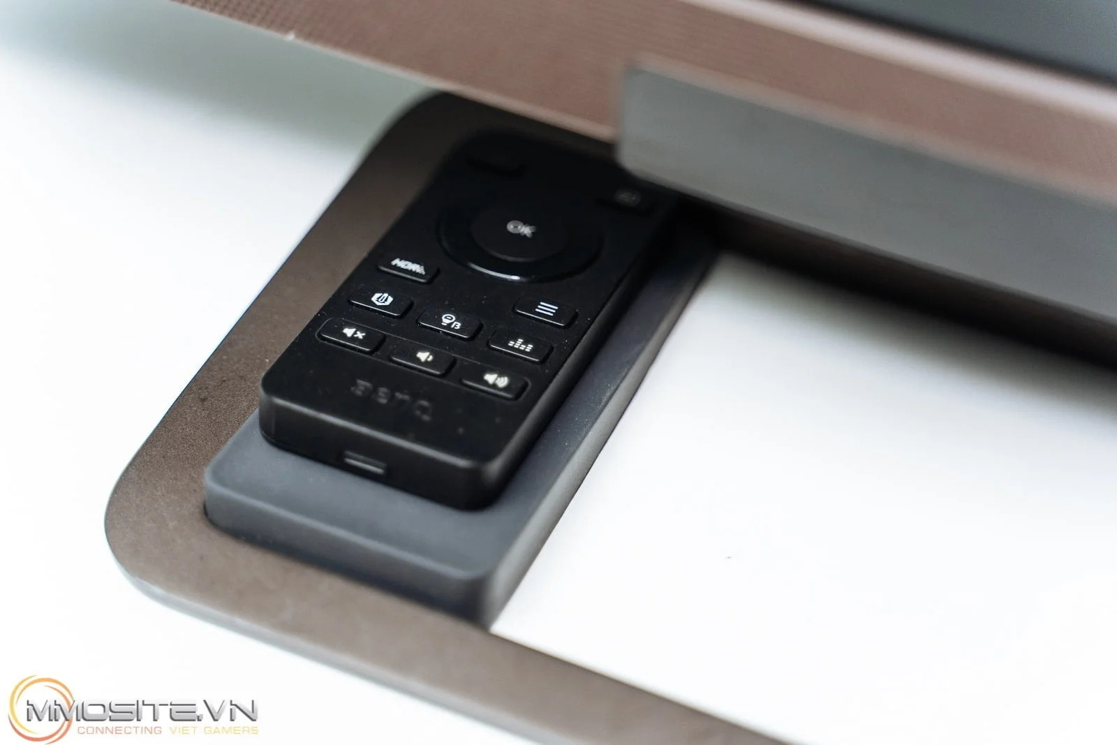 BenQ EX2780Q có thiết kế nút nhấn nằm phía sau lưng màn hình và ở phía tay phải người dùng. Với cần điều khiển và 3 nút nhấn thì bạn sẽ dễ dàng thao tác. Tuy nhiên trong quá trình sử dụng thì chúng tôi hiếm khi đụng tới khu vực này bởi lẽ đã có một phụ kiện khá thú vị đi kèm chính là remote của màn hình.