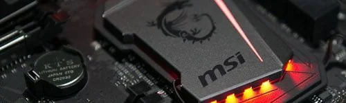 Khu vực chipset được làm khá to cùng logo rồng đen MSI. Như đã nói ở trên đây cũng là khu vực duy nhất được trang bị đèn led RGB. MSI thiết kế để ánh sáng được lọt ra tạo hình ảnh một chiếc lồng sắt đang cầm giữ con rồng kia trông rất ngầu