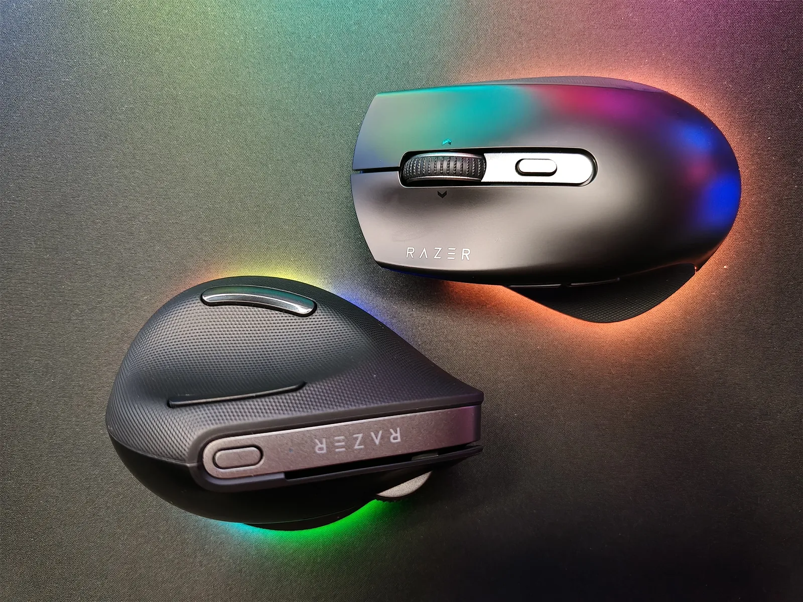 Tuy vậy, trọng lượng 150g và chiều cao gần 8cm khiến bản Vertical sẽ có phần khó phù hợp với người có bàn tay nhỏ. Đế chuột nâng cao giúp giảm ma sát với mặt bàn, nhưng cũng khiến thao tác cần không gian rộng hơn. Một điểm chung đáng giá trên cả hai là dải đèn RGB dưới thân chuột: 14 vùng trên bản thường và 18 vùng trên bản Vertical, đều hỗ trợ Razer Chroma RGB. Ánh sáng không chỉ làm đẹp không gian làm việc mà còn có thể phản hồi theo tác vụ hay thông báo trong game—một yếu tố hiếm thấy ở chuột dành cho dân văn phòng.