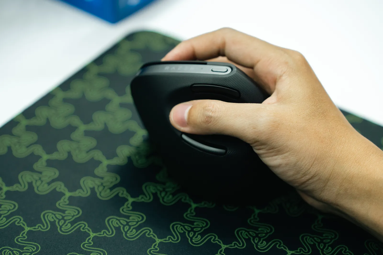 Trong khi đó, bản Razer Pro Click V2 Vertical Edition là một bước tiến lớn về công thái học. Thiết kế dọc gần như dựng đứng bàn tay người dùng ở góc nghiêng 71,7 độ. Cảm giác ban đầu khi cầm không hề lạ lẫm, nhờ phần thân bo tròn và vị trí nút bấm được đặt hợp lý. Với những ai từng gặp vấn đề đau cổ tay, phiên bản này là lựa chọn hợp lý, tuy nhiên cần thời gian làm quen.