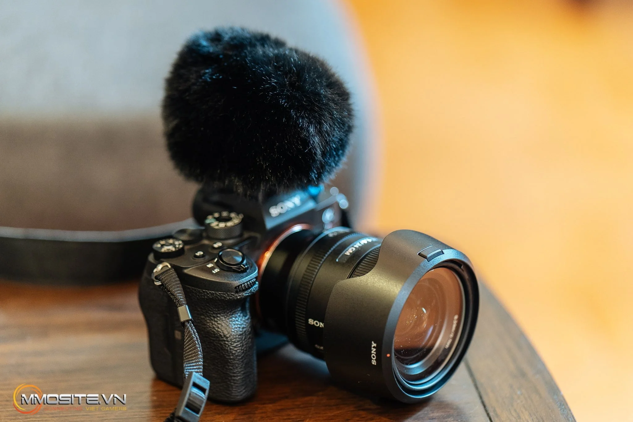 Thử nghiệm gắn lên Sony A7R mark IV thì chúng tôi nhận thấy khá gọn gàng. Với kích thước 69 x 60 x 39 mm cùng trọng lượng chỉ 48g thì Sennheiser MKE đã đạt điểm cộng về tính di động, bạn sẽ không phải lo lắng về micro lớn sẽ ảnh hưởng những cú máy handheld vì thật sự nó rất nhẹ. Bạn cũng sẽ dễ dàng nhận thấy phần đầu nối 3,5mm trên micro cũng có một chốt vặn giúp tránh tình trạng dây bị rút ra đột ngột cũng như cố định hướng dây tín hiệu về phía bạn thấy thoải mái nhất. Độ dài của dây này cũng khá phù hợp cho các máy DSLR/Mirrorless có cổng micro nằm bên trái.