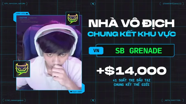 Mới đây, giải Chung Kết Khu Vực Châu Á Thái Bình Dương (APAC) – hay còn gọi Đại Chiến Siêu Xẻng của ĐTCL mùa giải thứ 14 đã diễn ra từ ngày 27.06 – 29.06 theo hình thức Online. Chung cuộc, tuyển thủ Vũ Văn Quang, tên thi đấu “SB Grenade” đã giành chiến thắng và nhận về 14,000 USD tiền thưởng (hơn 360 triệu VNĐ). Đây cũng là chức vô địch đầu tiên dành cho khu vực Việt Nam tại sân chơi quốc tế này, sau nhiều mùa giải cạnh tranh căng thẳng cùng các cường quốc Esports trong khu vực APAC như Hàn Quốc hay Nhật Bản.