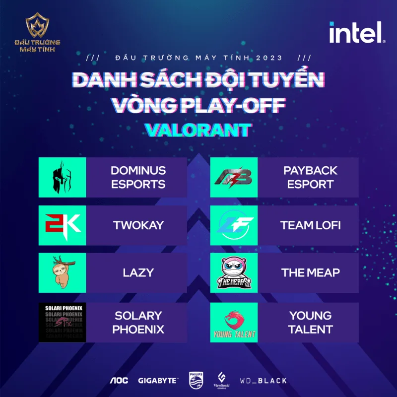 Danh sách các đội tuyển tham dự vòng PLAY-OFF của ĐẤU TRƯỜNG MÁY TÍNH