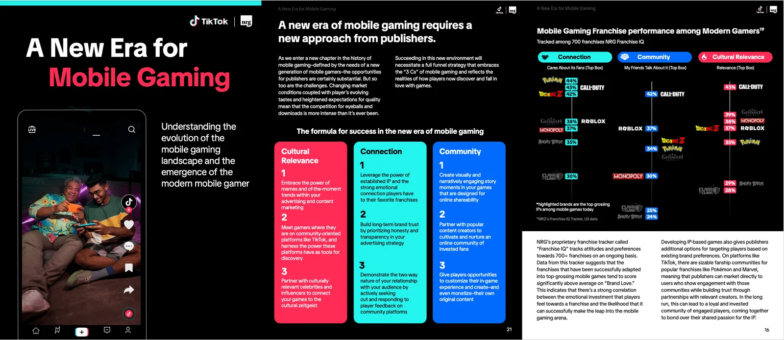 Dựa trên nghiên cứu, TikTok và NRG chính thức giới thiệu sách trắng mới, “A New Era for Mobile Gaming” (Tạm dịch: Kỷ nguyên mới cho Trò chơi Di động), đúc kết những khám phá thú vị về động lực chính của ngành, cùng các chiến lược khả thi và mang lại hiệu quả cho nhà xuất bản và nhà tiếp thị game, giúp họ thu hút người chơi mới trong thời đại số hiện nay.