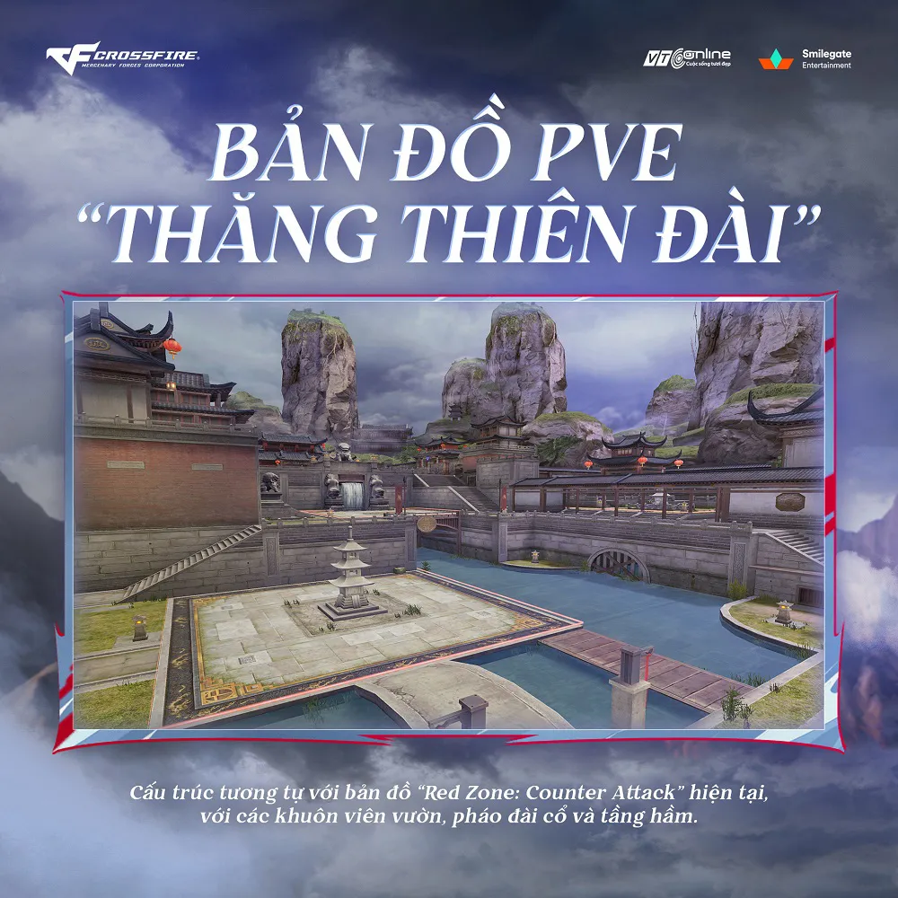 Nhân dịp kỷ niệm 5 năm được phát hành bởi VTC Online, sản phẩm game đột kích đã cho ra mắt một bản đồ dạng PvE đặc biệt với nhiều đầu tư công phu. Bản đồ PVE hoàn toàn mới có tên gọi Thăng Thiên Đài này sẽ mang đến cuộc chiến đậm chất thần thoại. Người chơi sẽ bắt đầu hành trình vượt ải, tiêu diệt Boss và đánh chiếm cứ điểm để khám phá các vùng đất mới.