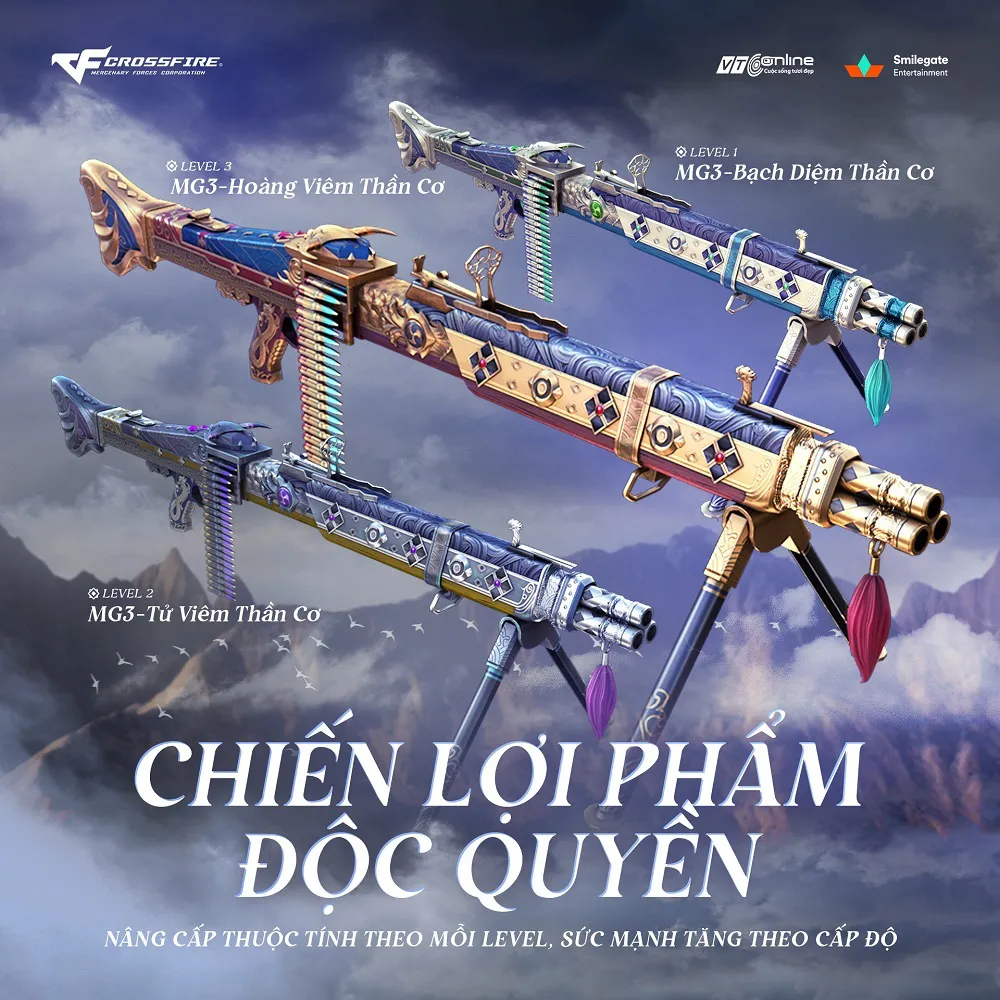 Đối với vũ khí sẽ có: MG3 Viêm Hỏa Thần Cơ, MG3 Tử Viêm Thần Cơ, MG3 Bạch Diệm Thần Cơ, MG3 Hoàng Viêm Thần Cơ. Thêm vào đó sẽ là Bộ vũ khí Ma Vương bao gồm: Cheytac M200, QBZ-03, AK47 Knife, Desert Eagle, CBJMS và Kiếm Ma Vương.