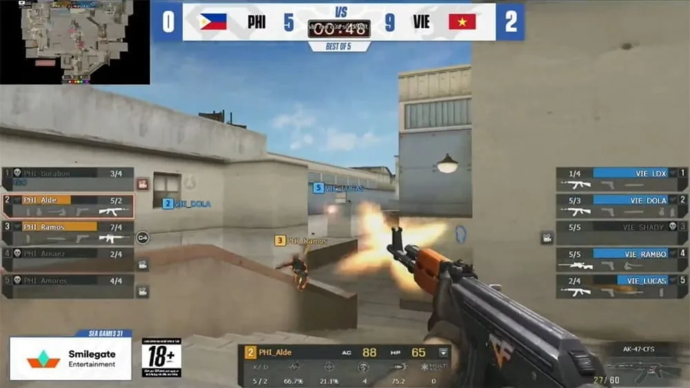Hai ngày 21/5 – 22/5 vừa qua, nội dung eSports Đột Kích tại SEA Games 31 đã chính thức thi đấu. Tham gia hạng mục này bao gồm 4 đội tuyển từ các quốc gia trong khu vực như Việt Nam, Lào, Indonesia và Philippines. Đây là những đội đến từ các nước có nền Đột Kích phát triển nhất trong khu vực Đông Nam Á trong đó Việt Nam được đánh giá là hạt giống triển vọng nhất.