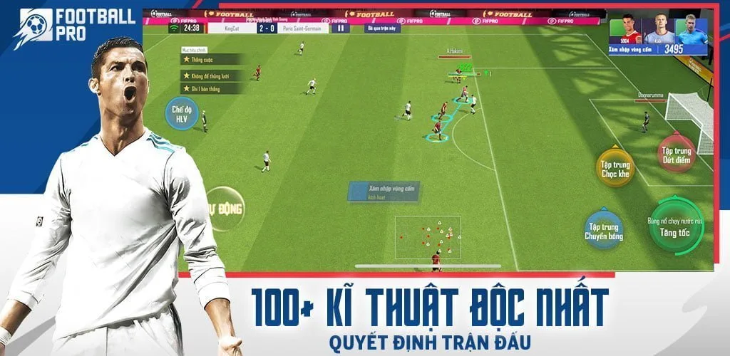 Football Pro VTC là nơi game thủ được tự do thể hiện các kỹ năng, kỹ thuật như bóng đá trên sân cỏ ngoài đời. Đảo chân như Ronaldo, rê bóng như Messi, múa skill như Neymar hay bứt tốc dứt điểm như Mbappé.