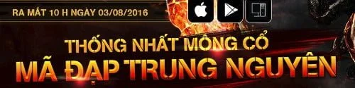 Thế nhưng, trong suốt những ngày vừa qua, cộng đồng game thủ Việt Nam đã truyền tai về một tựa game mobile đầu tiên lấy đề tài về đội quân hùng mạnh này. Đó là Đại Mạc Phong Vân của NPH Vega Game. Trang Landing của tựa game này đã được mở vào ngày hôm nay 29/07 với khẩu hiệu “Thống nhất Mông Cổ, mã đạp trung nguyên”, miêu tả khoảng thời gian lúc Thành Cát Tư Hãn tập hợp quân đội đến khi Trung Hoa hoàn toàn thuộc về tay Mông Cổ. Ngày ra mắt chính thức cho Đại Mạc Phong Vân là 10h sáng ngày 03/08/2016.