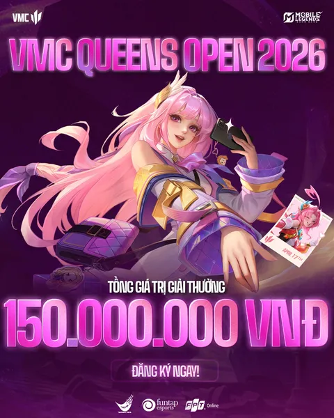 Trong năm 2026, thể thao điện tử Việt Nam ghi nhận bước chuyển với lộ trình thi đấu đều đặn của Mobile Legends: Bang Bang. Sau tuần mở màn Vòng bảng Vietnam MLBB Championship (VMC) Mùa Xuân 2026, cộng đồng nữ tuyển thủ tiếp tục có cơ hội tranh tài tại VMC Queens Open 2026.