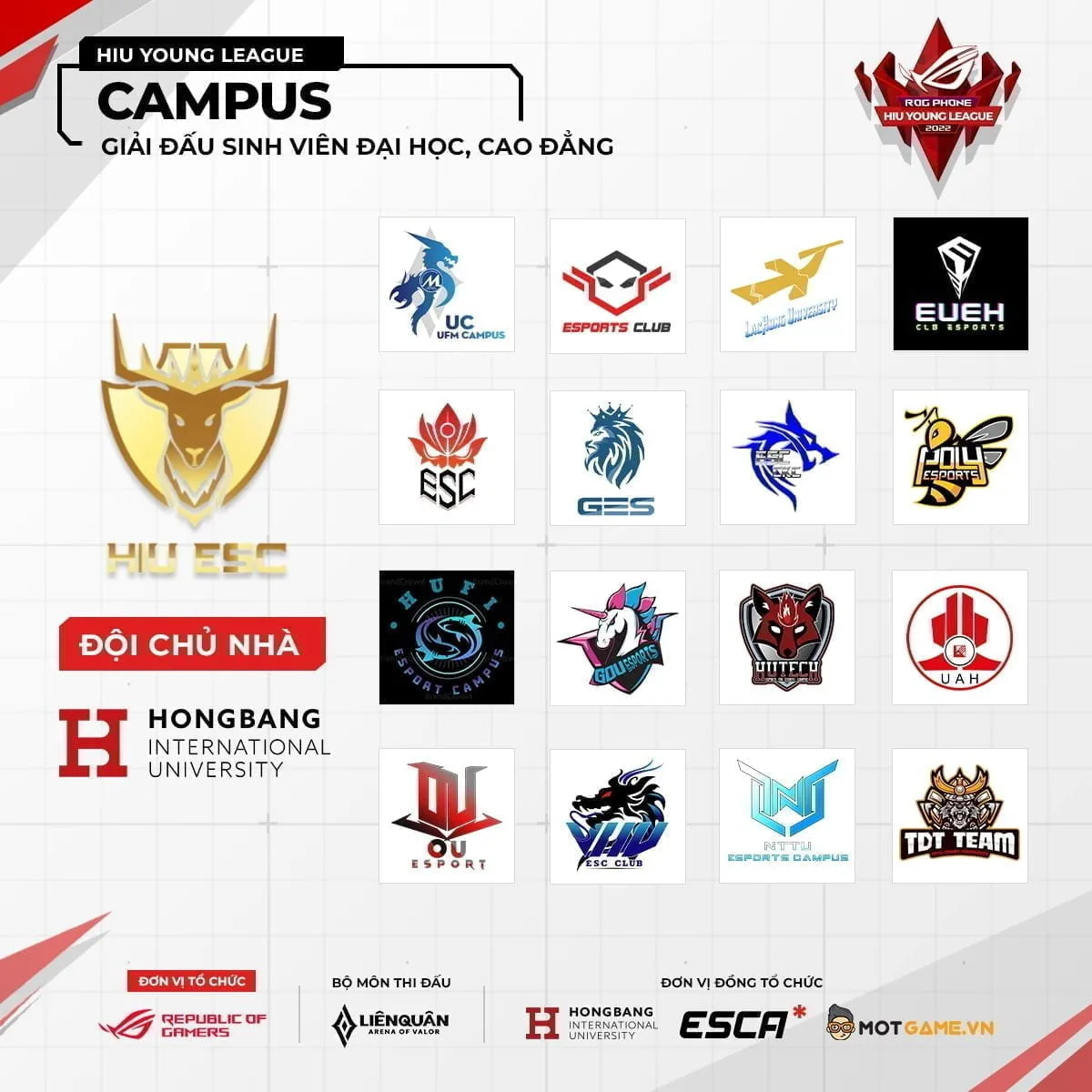- Đơn vị đồng tổ chức: ĐH Quốc tế Hồng Bàng, ESCA Vietnam, Mọt Game