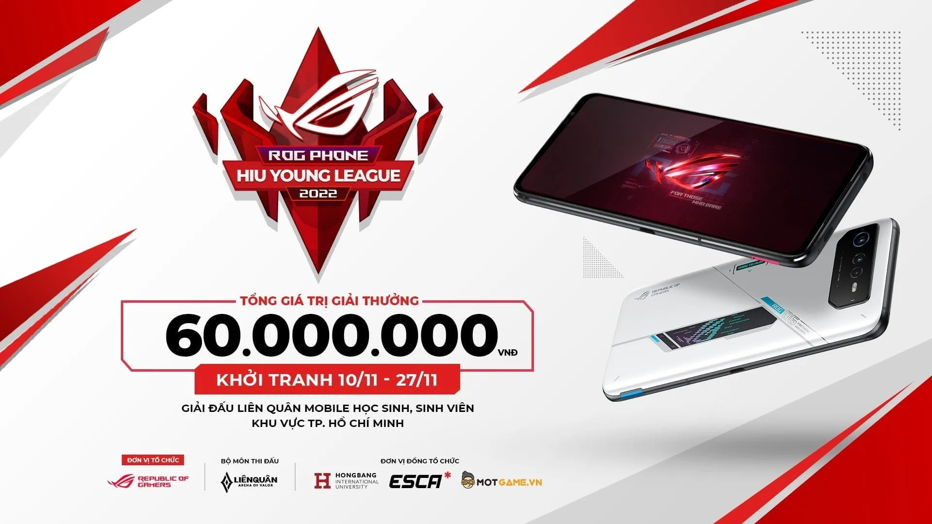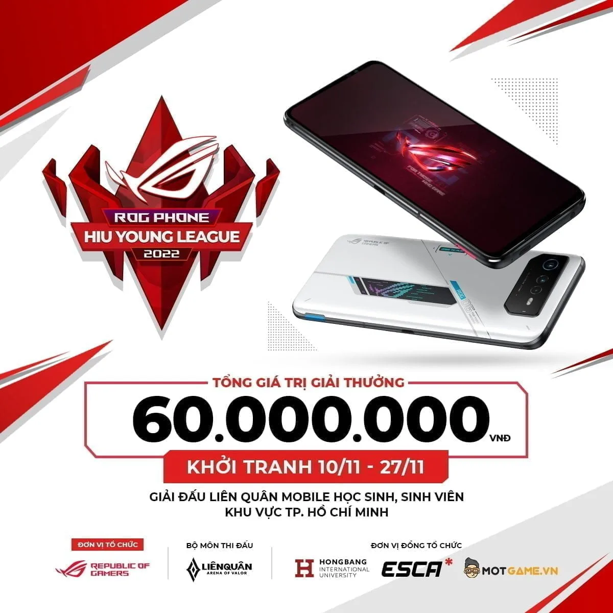 Hòa nhịp vào không khí đó, ROG đã kết hợp cùng Trường Đại học quốc tế Hồng Bàng, ESCA Vietnam và Mọt Game đăng cai tổ chức giải đấu ROG Phone HIU Young League 2022 bộ môn thể thao điện tử Liên Quân Mobile. Sự kiện bao gồm Campus League dành các đội sinh viên và Junior League dành cho khối trung học phổ thông trên địa bàn TP.HCM. Tổng giải thưởng cho cả 2 cụm thi đấu là 60.000.000 VNĐ. Đặc biệt, ROG Phone 6 là thiết bị thi đấu chính thức của giải đấu này.