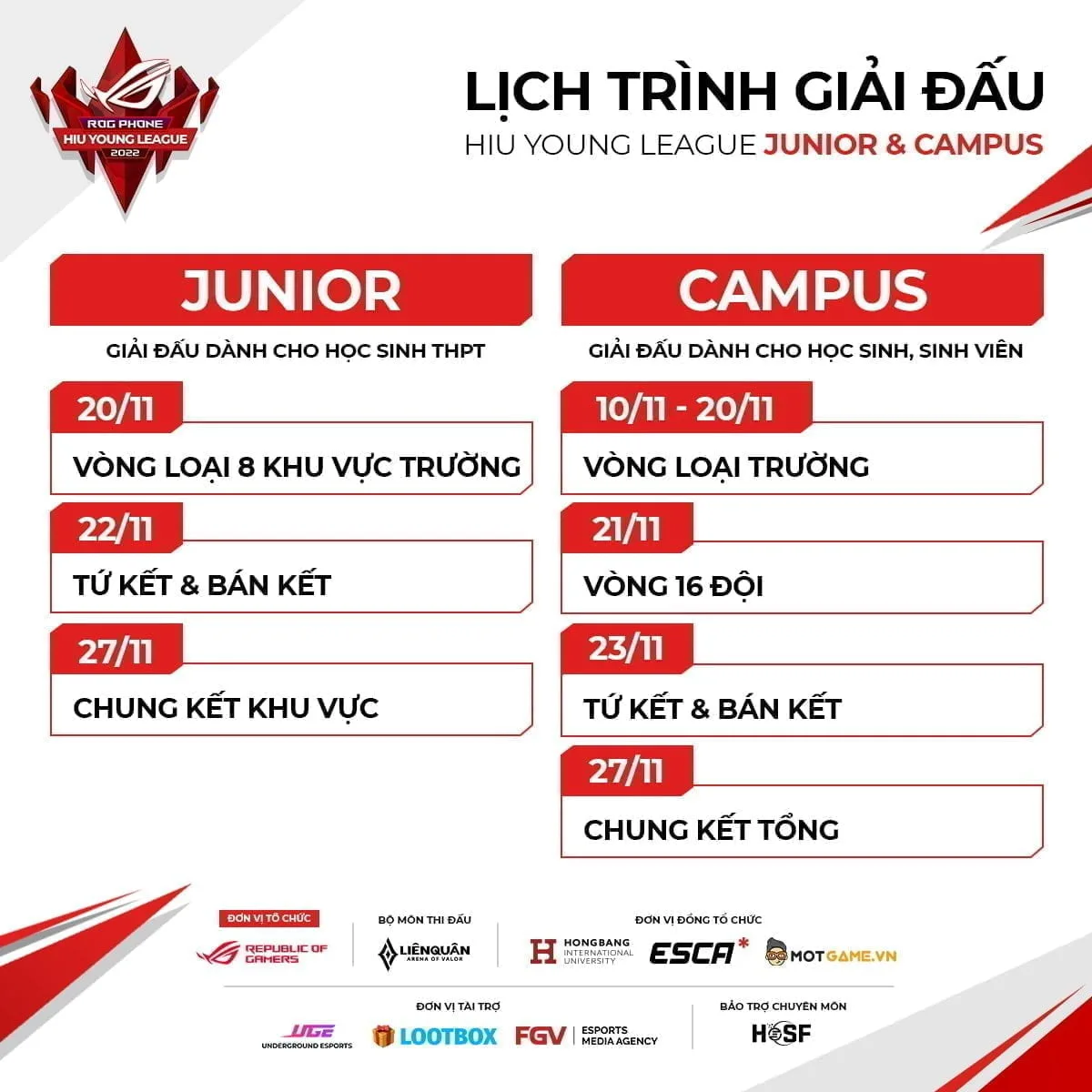 - Giải sinh viên Campus League: 12/11 – 23/11/2022