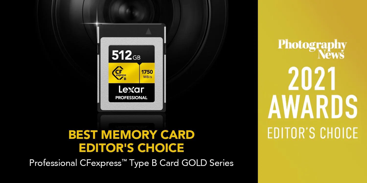 Lexar mới đây vừa nhận được giải thưởng ‘Best Memory Card Editor’s Choice – Lexar Professional CFexpress Type B Memory Card Series GOLD trong Giải thưởng tạp chí Photography News 2021.