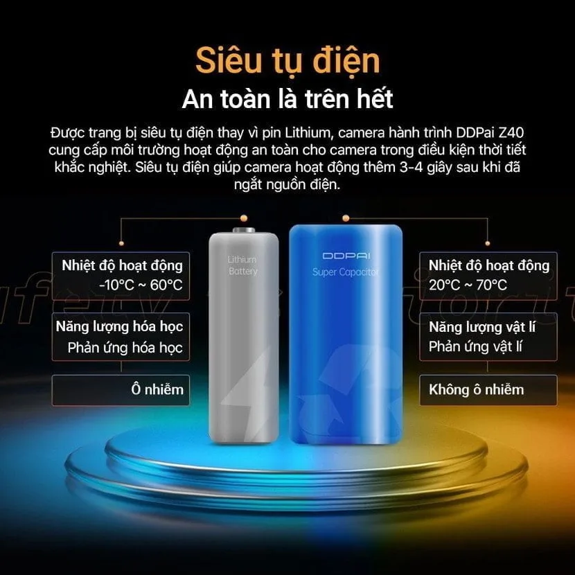 Siêu tụ điện giúp camera hoạt động thêm 3-4 giây sau khi đã ngắt nguồn điện.