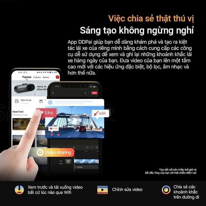Kết hợp giữa theo dõi GPS cùng công nghệ thực tế ảo SR do DDPai phát minh, giúp người lái hào hứng hơn khi biến hành trình lái xe thành một “cuộc đua”. Ngoài ra, DDPai còn hỗ trợ chia sẻ các đoạn video lên mạng xã hội đặc biệt là cộng đồng DDPai.