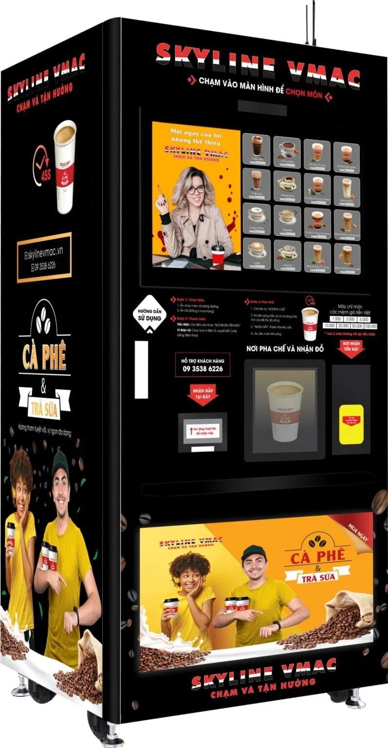 - Menu lên tới 16 loại đồ uống cà phê và trà sữa được yêu thích – có thể lựa chọn đồ uống nóng hoặc đá cho mỗi loại. Bảng giá niêm yết có thể linh hoạt điều chỉnh.