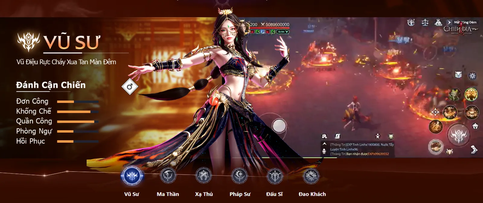 Vũ Sư là lớp nhân vật độc quyền được ra mắt trong phiên bản cập nhật Xưng Vương Chiến Địa vào 09h00 sáng ngày 07/05. Cùng với Xạ Thủ, Ma Thần, Đao Khách, Pháp Sư, Đấu Sĩ, giờ đây người chơi có thêm một lớp nhân vật nữ hấp dẫn nữa để trải nghiệm. Vũ Sư sẽ giúp người chơi có thêm một lựa chọn hiệu quả cho khả năng tấn công nhiều mục tiêu và khả năng khống chế hiệu quả.