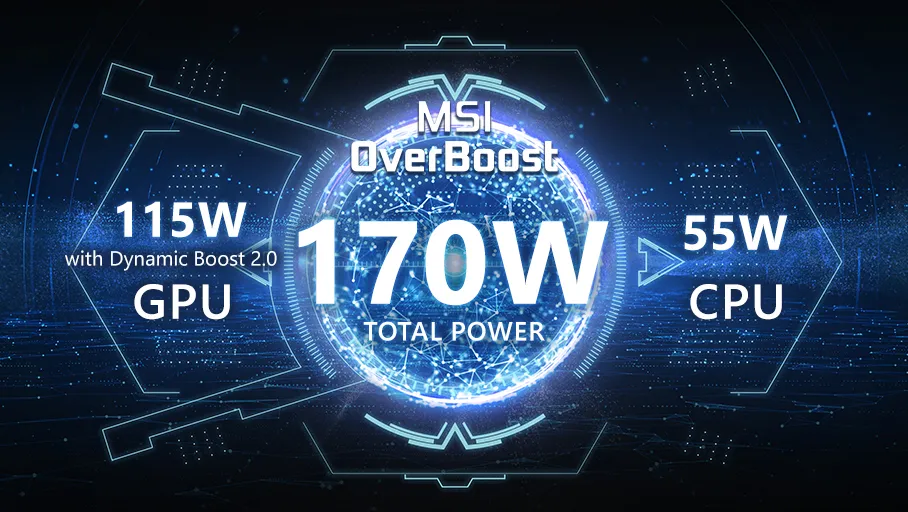 Tần số quét 240Hz cũng sẽ làm hài lòng mọi game thủ khó tính nhất, giúp bắt kịp mọi chuyển động trên chiến trường game. Công nghệ MSI OverBoost độc quyền, cho phép thiết bị đạt tổng công suất CPU và GPU lên tới 170W, mang lại hiệu năng xuất sắc khi chơi game hay chạy các tác vụ nặng. Đây cũng là dòng máy duy nhất trong tầm giá sở hữu CPU Intel Core 200HX thế hệ mới, cho hiệu suất vượt trội so với thế hệ trước.