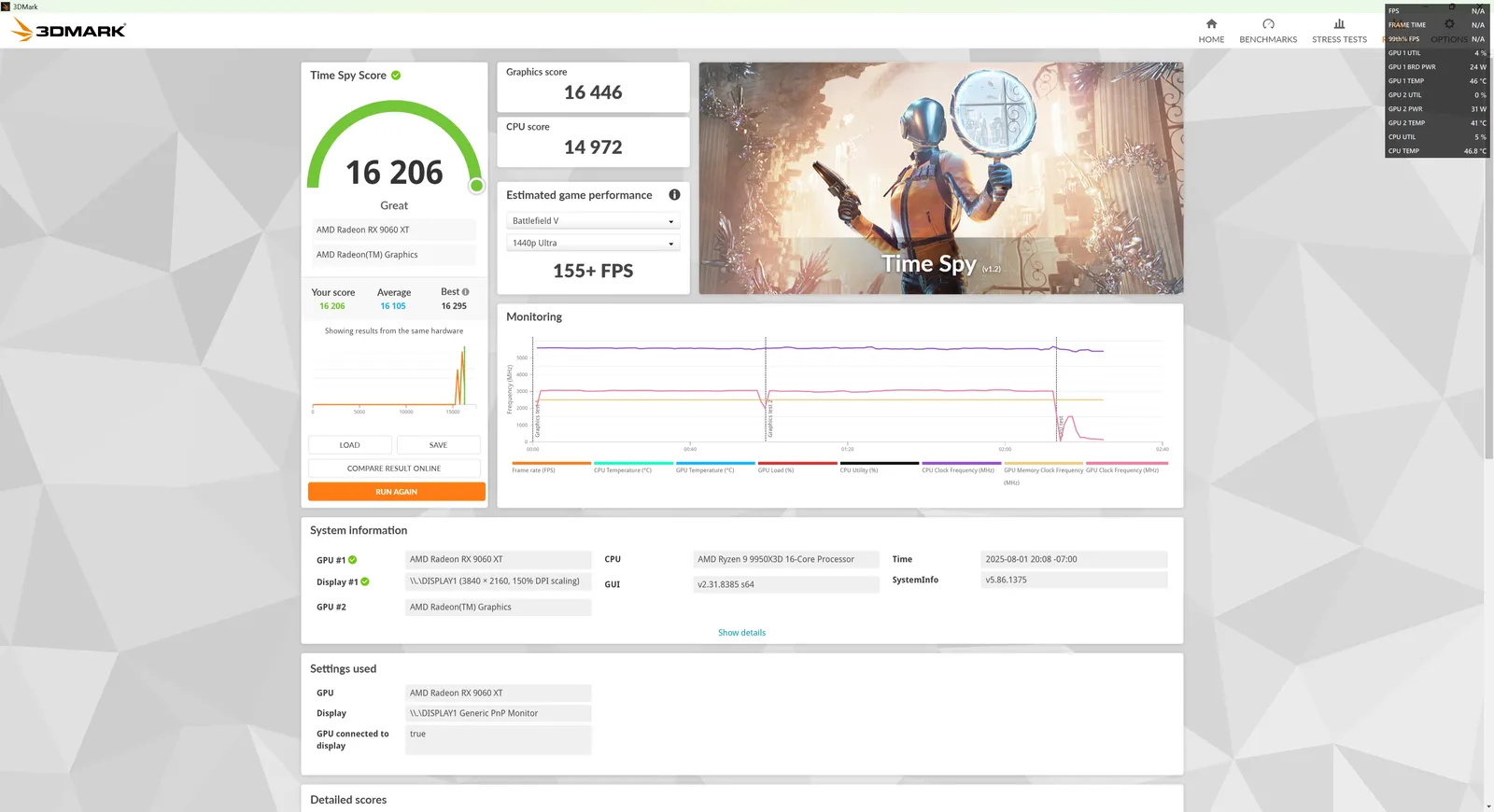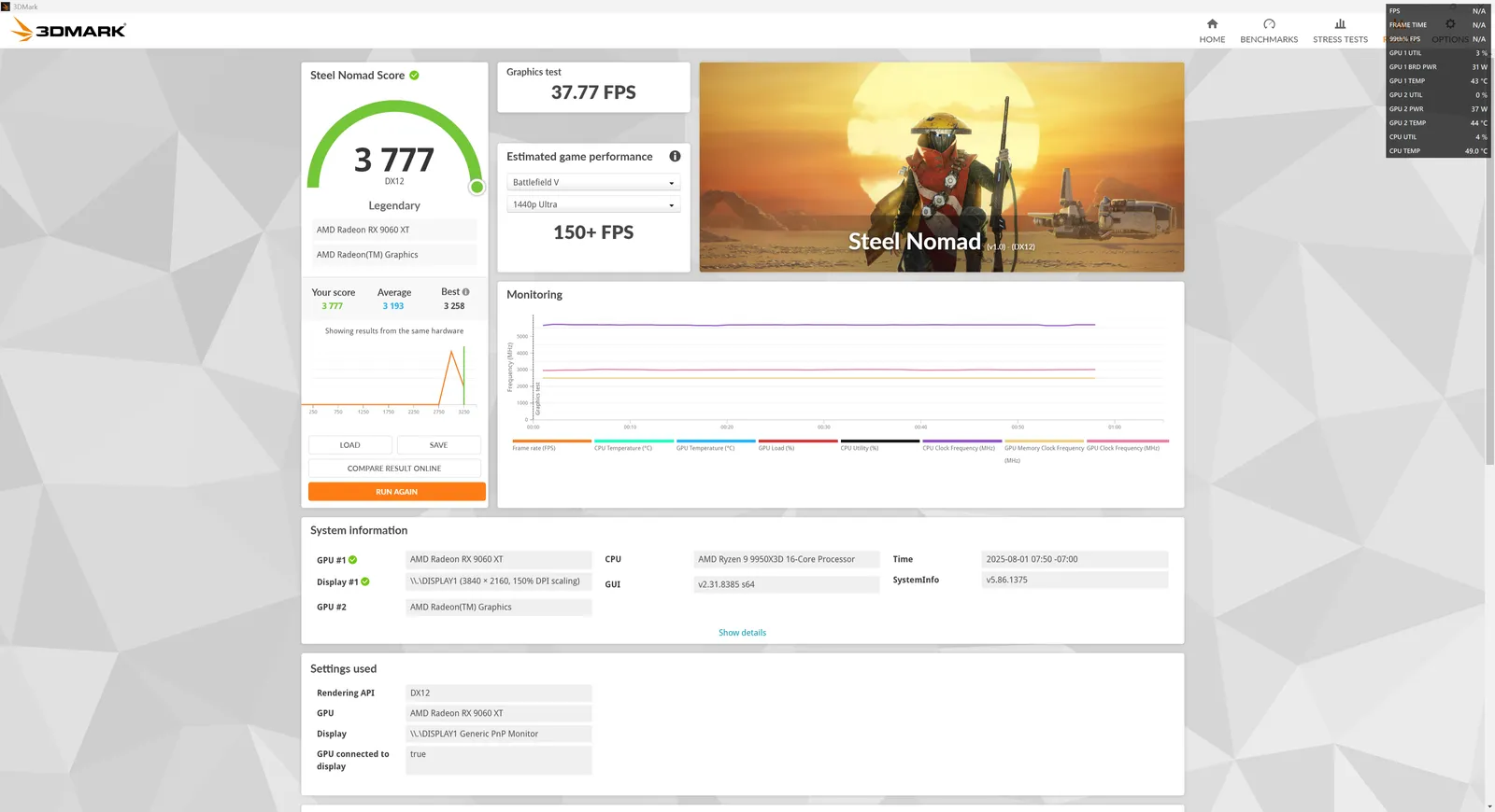 Test 9 – Extreme / FSR 4 Ultra Performance / Frame Generation ON / Ray Regeneration HIGH