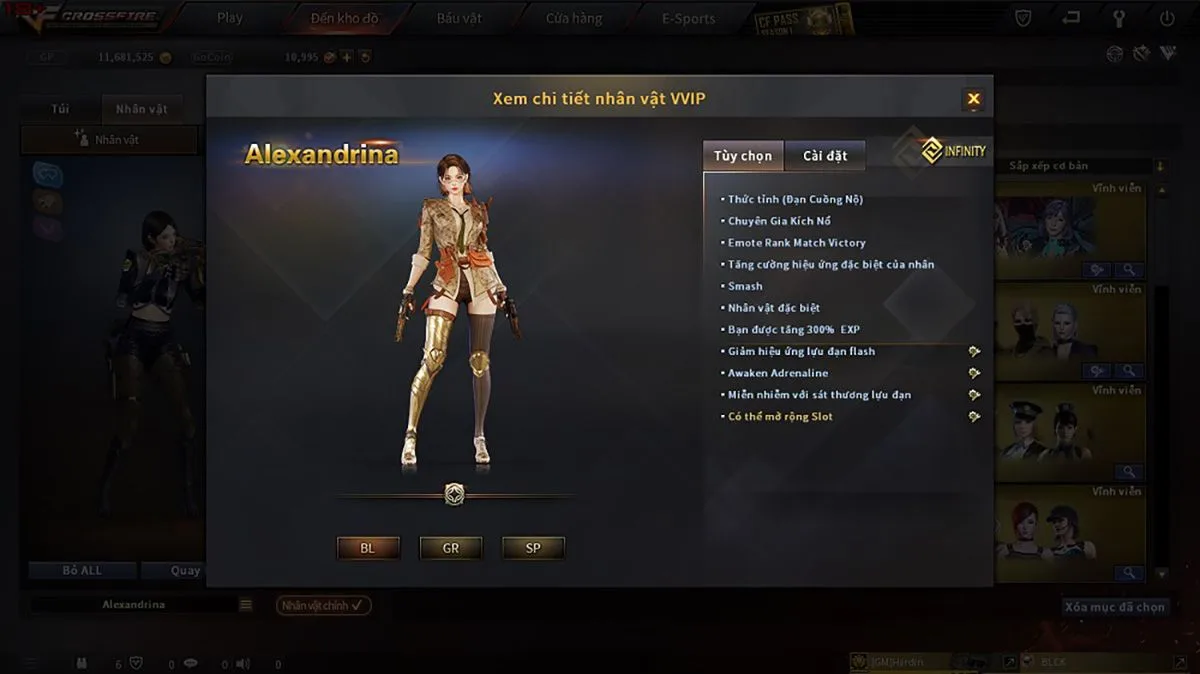 Nhân vật VIP Alexandrina có lẽ là một trong những nhân vật được cộng đồng người chơi Đột Kích mong chờ nhất ở nửa đầu tháng 5 năm nay. Không chỉ có ngoại hình xinh đẹp cuốn hút, nhân vật VIP Alexandrina còn sở hữu những tính năng đặc quyền VIP vô cùng ấn tượng: