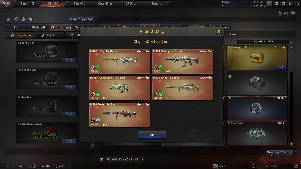 - Hòm tùy chọn vũ khí VIP Infinity: M82A1 Angelic Beast, M4A1-S-Angelic Beast, Desert Eagle Angelic Beast, Cheytac- M200 Angelic Beast, Cheytac M200 Demonic Beast.
