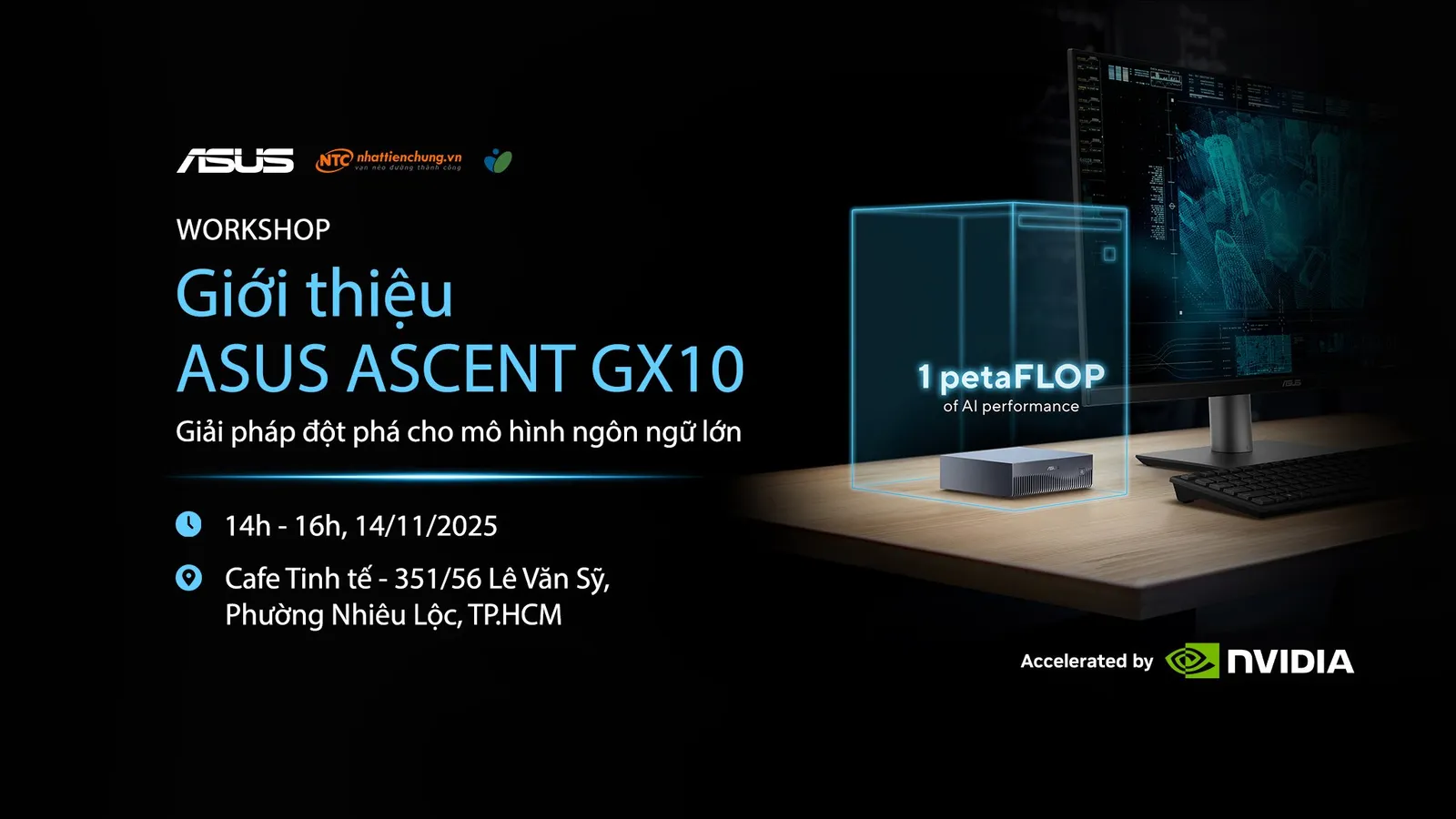 Công ty Nhất Tiến Chung, đối tác Elite của NVIDIA tại Việt Nam, đã chính thức giới thiệu ASUS Ascent GX10 — dòng siêu máy tính AI thế hệ mới — trong một sự kiện phối hợp cùng ASUS và cộng đồng Tinh Tế, diễn ra ngày 14/11/2025. Sản phẩm hướng đến việc xử lý các mô hình ngôn ngữ lớn (LLM) ngay tại hạ tầng doanh nghiệp, giúp giảm chi phí vận hành và tăng khả năng bảo mật dữ liệu.