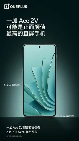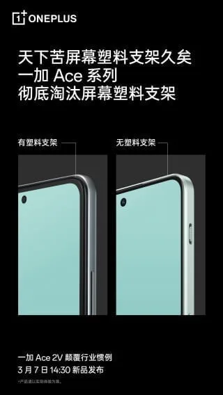 Chủ tịch OnePlus Trung Quốc – Louis Li chia sẻ rằng OnePlus Ace 2V nằm ở phân khúc tầm trung và cận cao cấp, nên chiếc điện thoại sẽ không có vẻ ngoài cao cấp như những đàn anh ở phân khúc trên. Tuy nhiên, với việc chiếc điện thoại có viền màn hình siêu mỏng và mặt sau sẽ có lớp hoàn thiện giống như đá sa thạch và gốm gợi nhớ đến OnePlus 11 và OnePlus Ace 2 (được bán với tên 11R tại thị trường quốc tế).