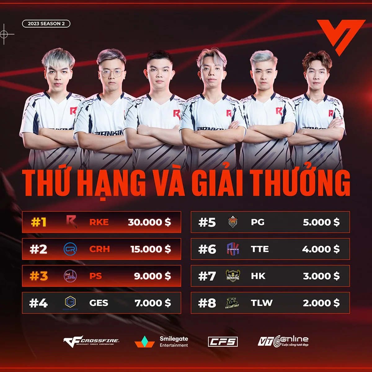 Kết quả cuối cùng và phần thưởng của các đội ở CFVL 2023 mùa 2 như sau: