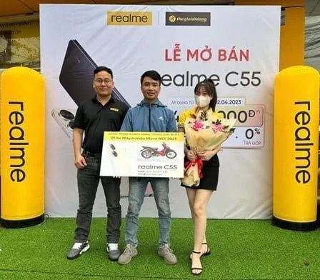 Ngày 22/4/2023, realme đã tổ chức buổi lễ trao giải đặc biệt “Mua Dế Mới – Nhận Xế Mới” để trao xe cho người trúng giải, đồng thời tri ân khách hàng đã luôn ủng hộ nhãn hàng cùng sản phẩm mới realme C55. Trong thời gian tới, realme sẽ mang đến nhiều sản phẩm công nghệ chất lượng cao cùng các chương trình ưu đãi giá trị khác để phục vụ khách hàng.