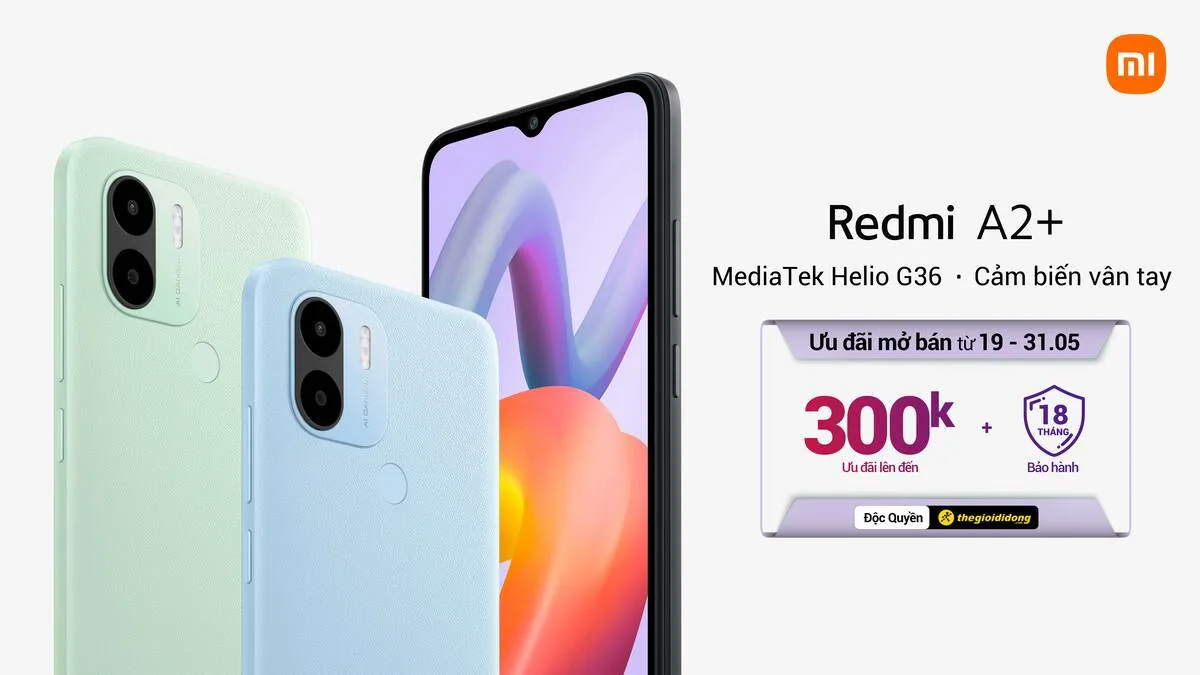 Redmi A2+ được giới thiệu tại Việt Nam với ba phiên bản màu gồm: Đen, Xanh Lam và Xanh Lá. Mức giá dành cho Redmi A2+ với bộ nhớ trong 64GB là 2.790.000. Thiết bị có mặt trên các hệ thống cửa hàng Thế Giới Di Động trên toàn quốc. Đặc biệt, trong thời gian từ ngày 19/05 đến 31/05, khi mua Redmi A2+, người dùng sẽ có cơ hội giảm ngay 300.000. Thông tin chi tiết về chương trình khuyến mại: https://www.thegioididong.com/dtdd/xiaomi-redmi-a2-plus